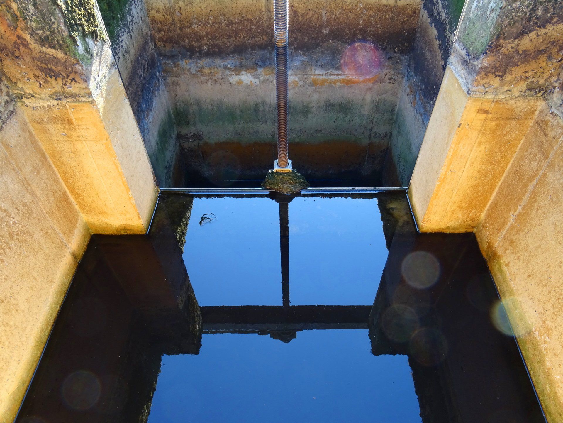 Gereinigtes sauberes Wasser verläßt die Kläranlage in die "Gehle"